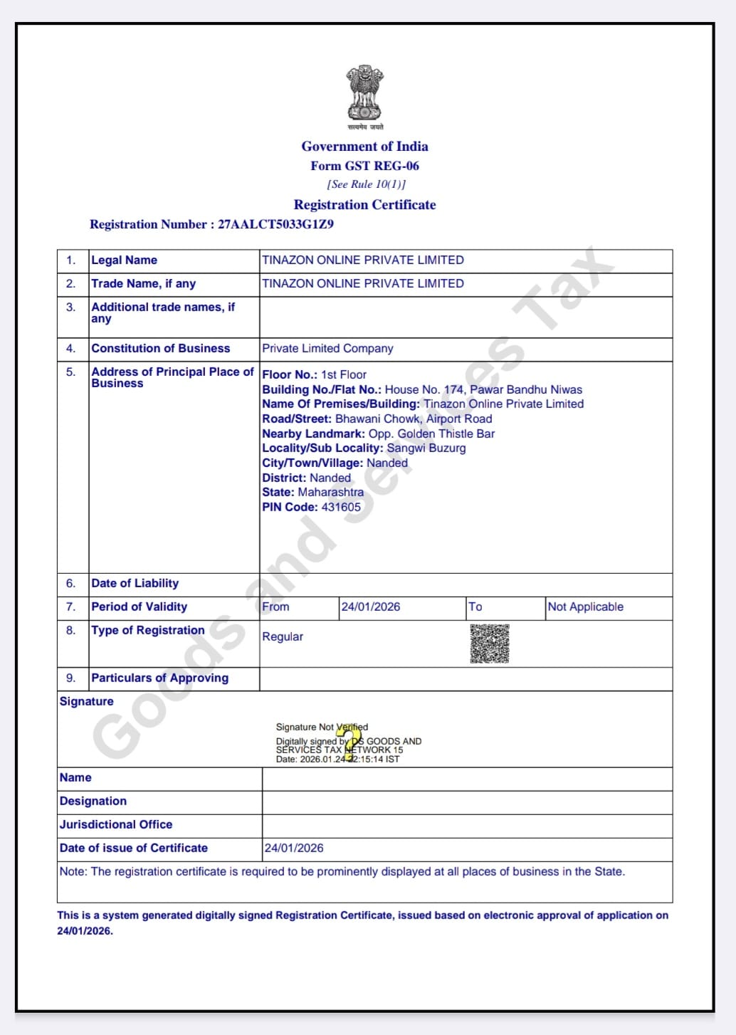 Certificate Of TAN
